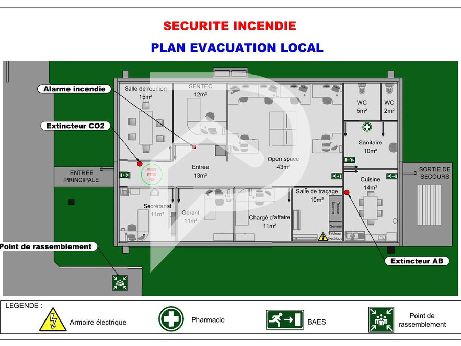 Il se compose d'un open space de 43 m², d'une salle de réunions de 15 m², de 5 bureaux, ainsi que des sanitaires et une cuisine.